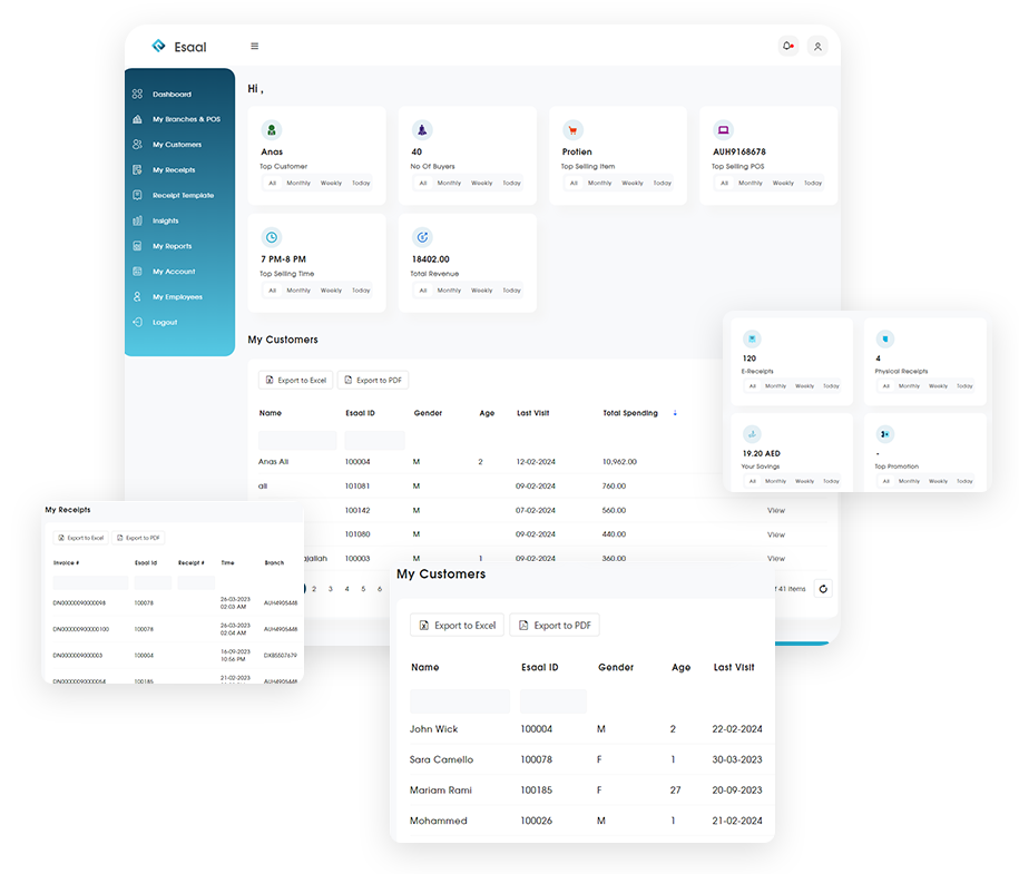 - Loyalty System Integration: Seamlessly connect Esaal with your existing loyalty programs, enriching customer rewards with every purchase.